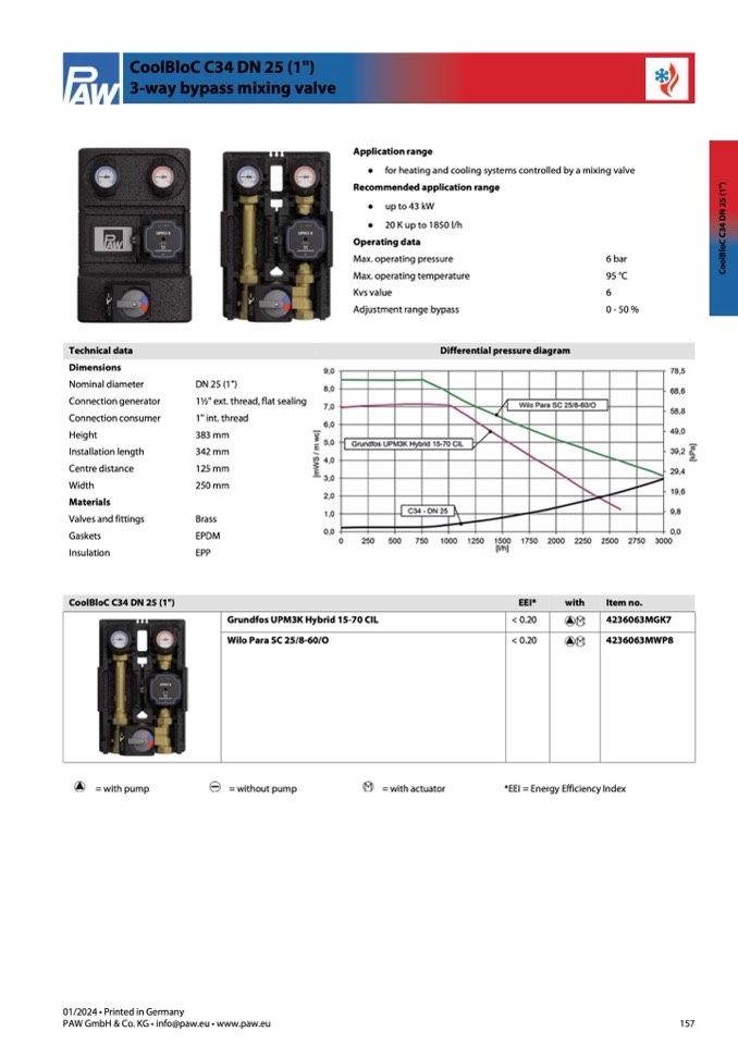 ● for heating and cooling systems controlled by a mixing valve