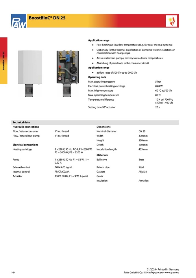 ● Post-heating at low flow temperatures (e.g. for solar thermal systems)