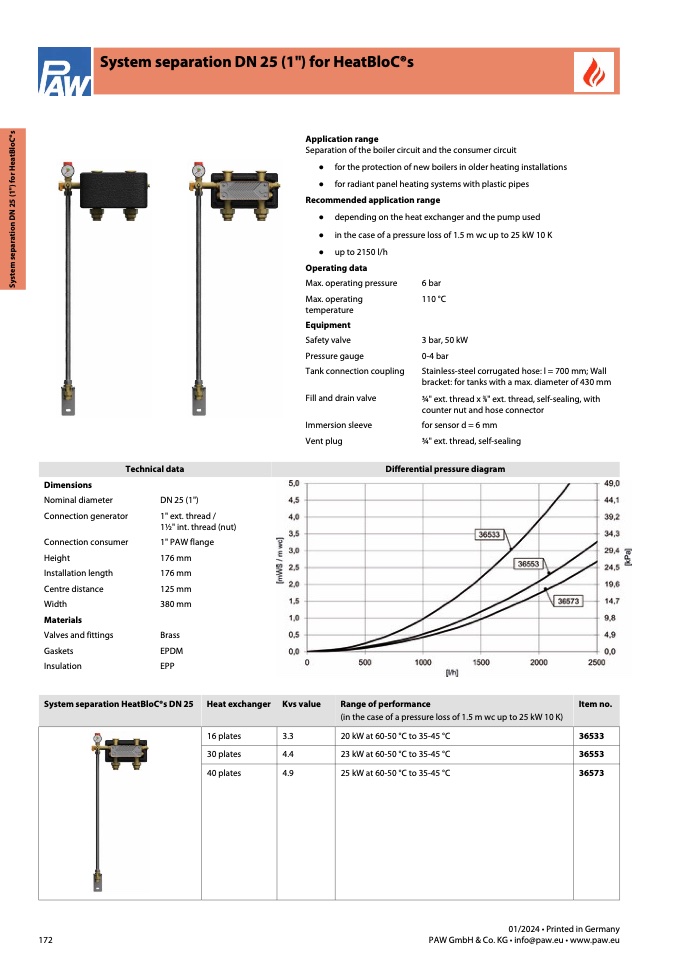 (in the case of a pressure loss of 1.5 m wc up to 25 kW 10 K)