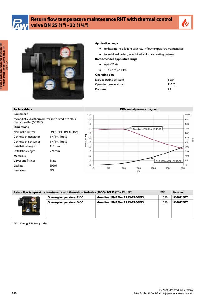 Return flow temperature maintenance with thermal control valve (60 °C) - DN 25 (1") - 32 (1