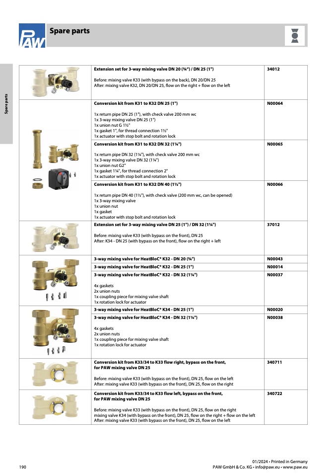 Conversion kit from K33/34 to K33 flow left, bypass on the front,