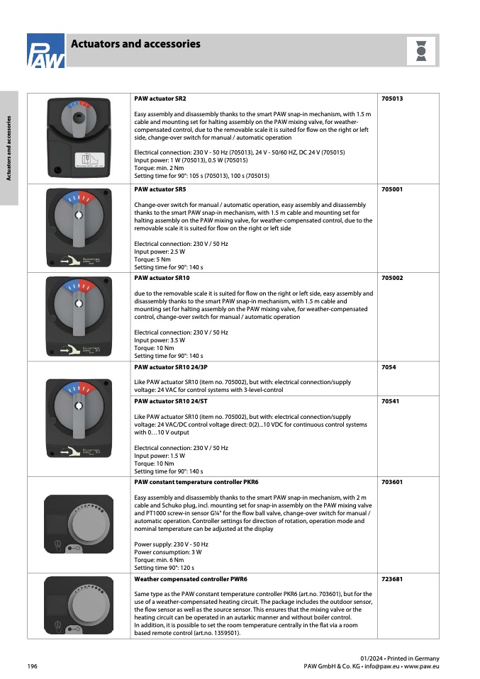 Like PAW actuator SR10 (item no. 705002), but with: electrical connection/supply