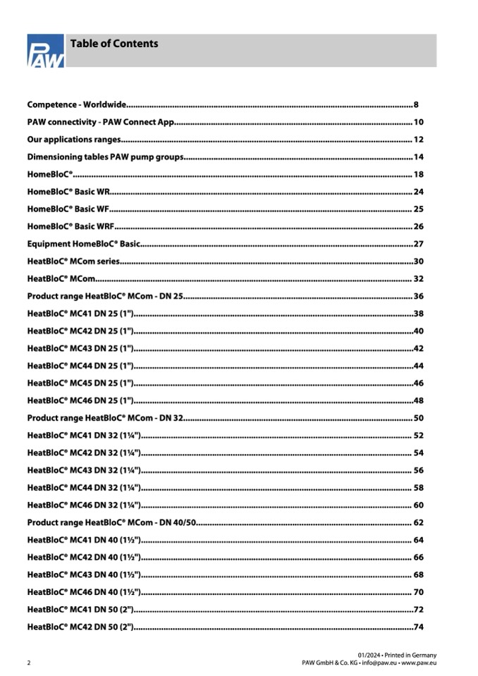 Dimensioning tables PAW pump groups....................................................................................................14