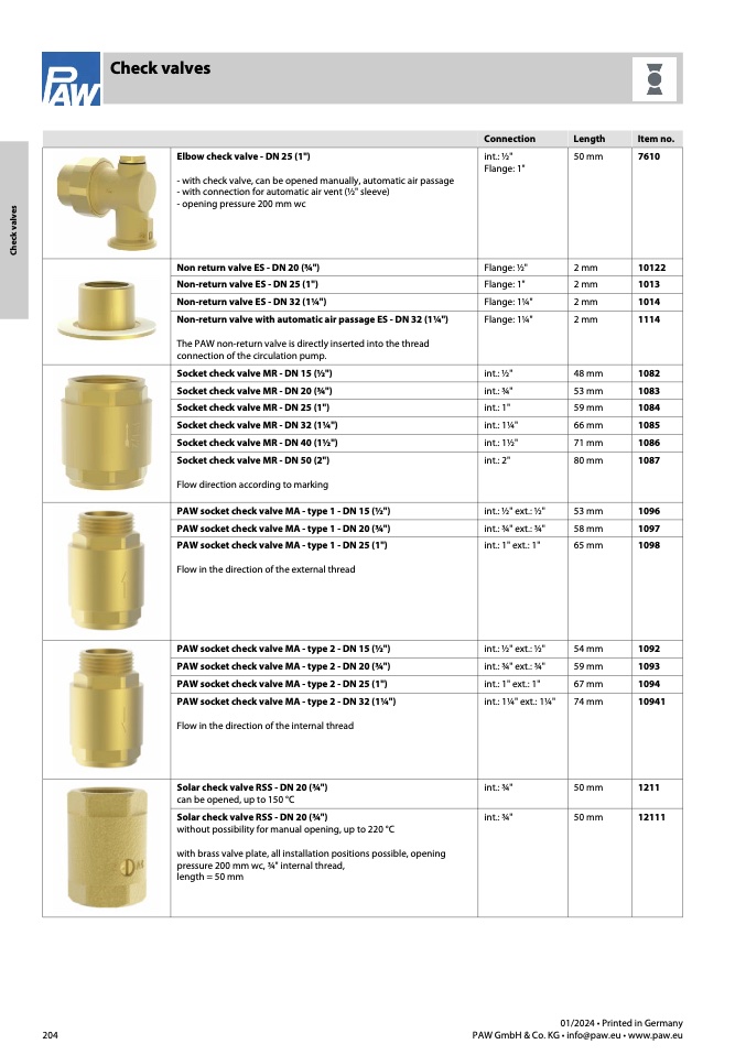 PAW socket check valve MA - type 2 - DN 32 (1