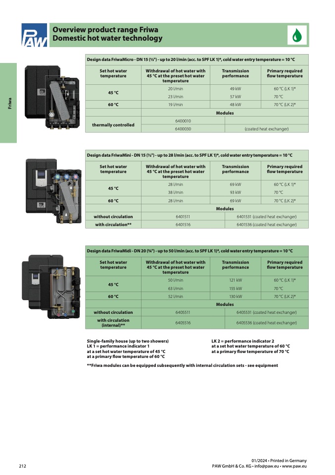 **Friwa modules can be equipped subsequently with internal circulation sets - see equipment
