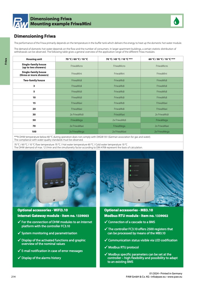 withdrawals can be observed. The following table gives a general overview of the application range of the different Friwa modules.