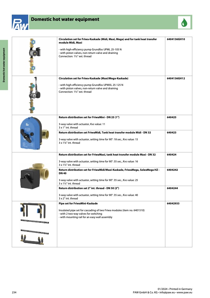 Circulation set for Friwa-Kaskade (Midi, Maxi, Mega) and for tank heat transfer