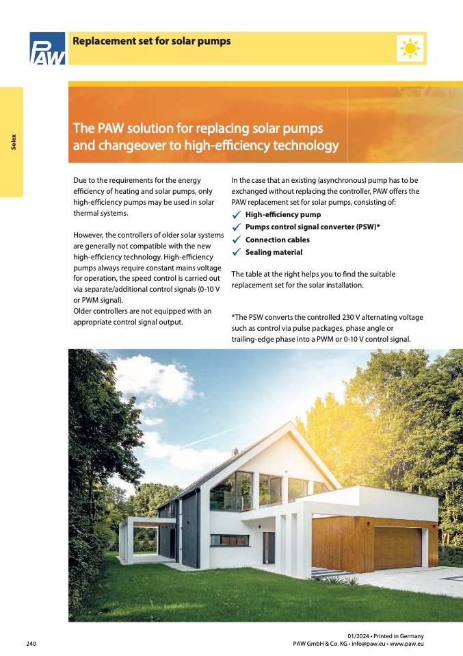PAW replacement set for solar pumps, consisting of: