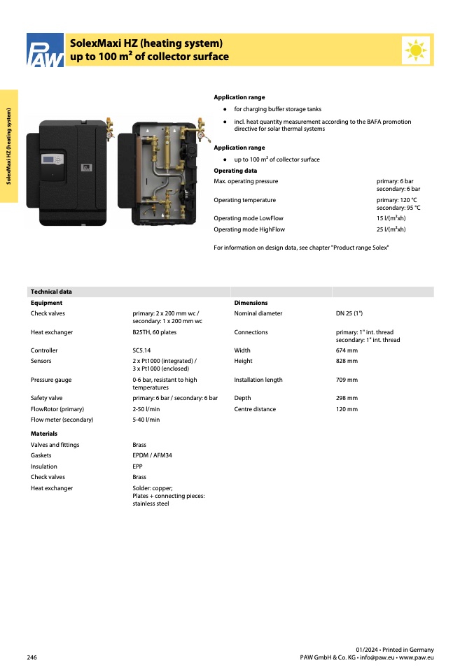 For information on design data, see chapter "Product range Solex"