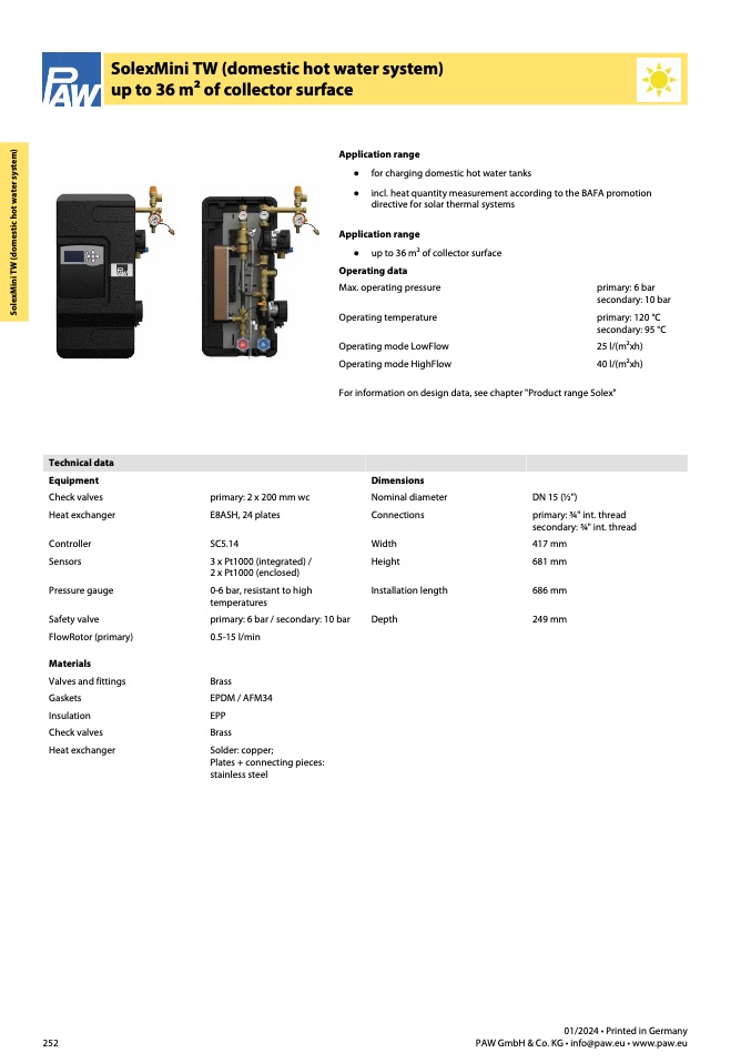 For information on design data, see chapter "Product range Solex"