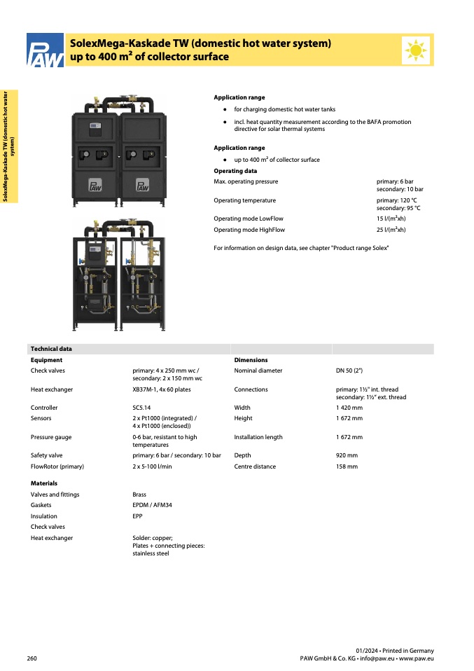 ● up to 400 m2 of collector surface