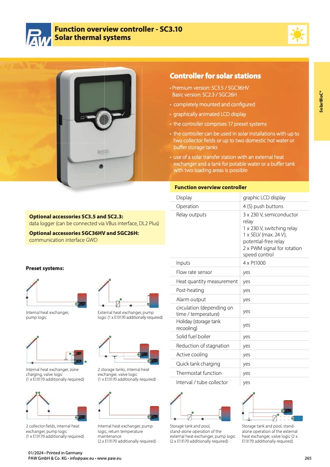 • the controller can be used in solar installations with up to