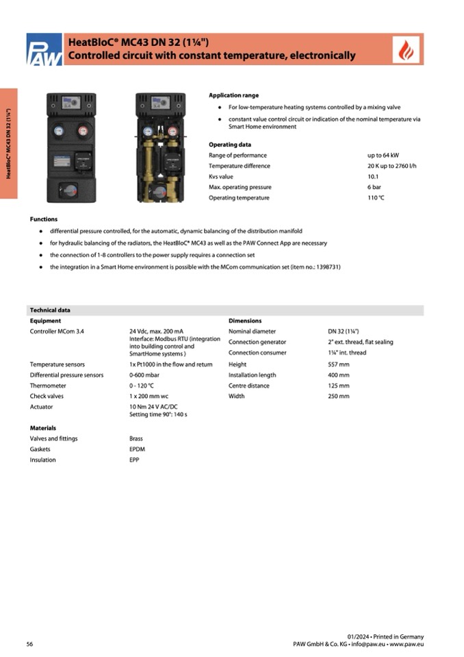 ● for hydraulic balancing of the radiators, the HeatBloC® MC43 as well as the PAW Connect App are necessary