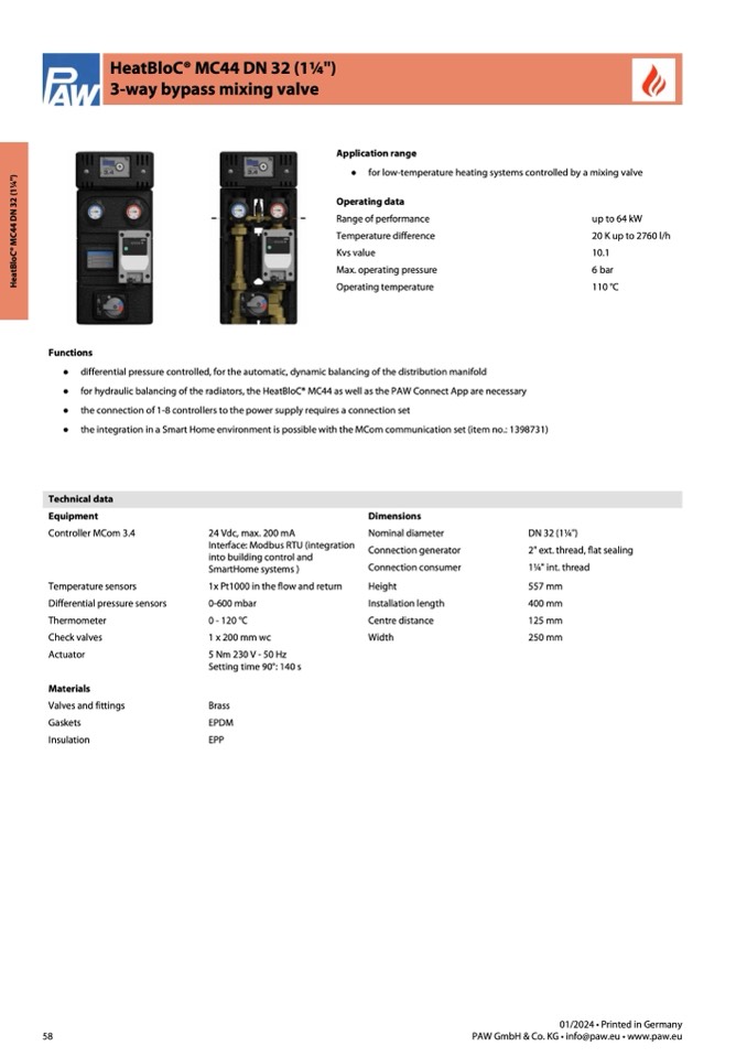 ● for hydraulic balancing of the radiators, the HeatBloC® MC44 as well as the PAW Connect App are necessary