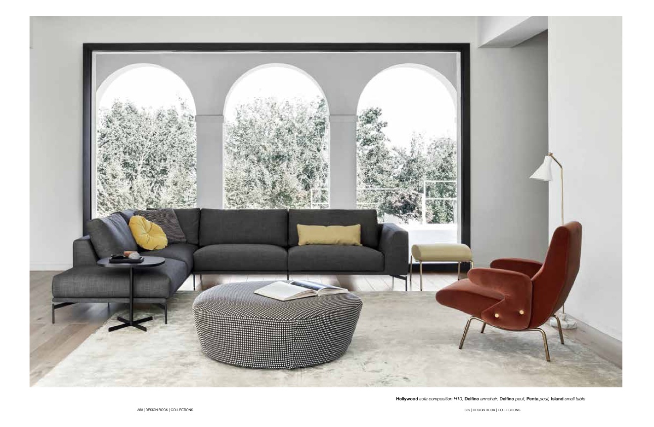 Hollywood sofa composition H10, Delfino armchair, Delfino pouf, Penta pouf, Island small table