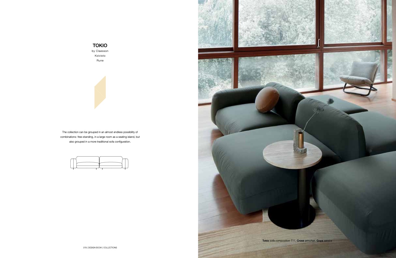 Tokio sofa composition T11, Cross armchair, Goya service