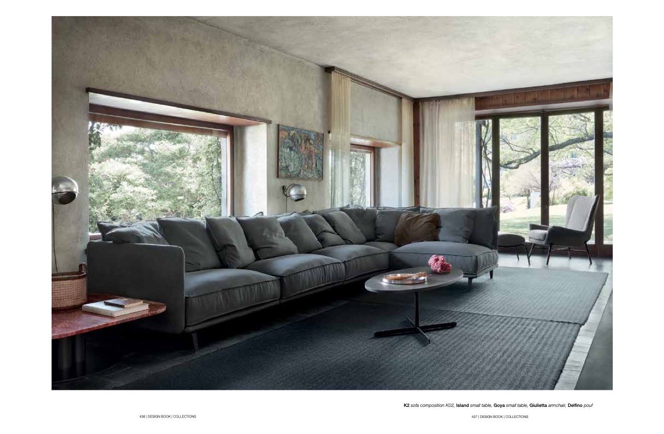 K2 sofa composition K02, Island small table, Goya small table, Giulietta armchair, Delfino pouf