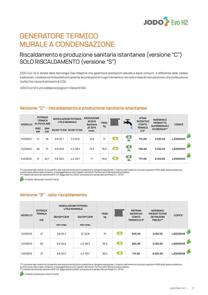 JODO Evo H2 è una caldaia ecologica in Classe 6 NOx