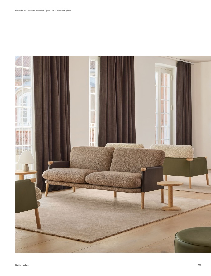 Savannah Chair. Upholstery: Leather 906 Organic / Elle 02. Wood: Oak light oil.