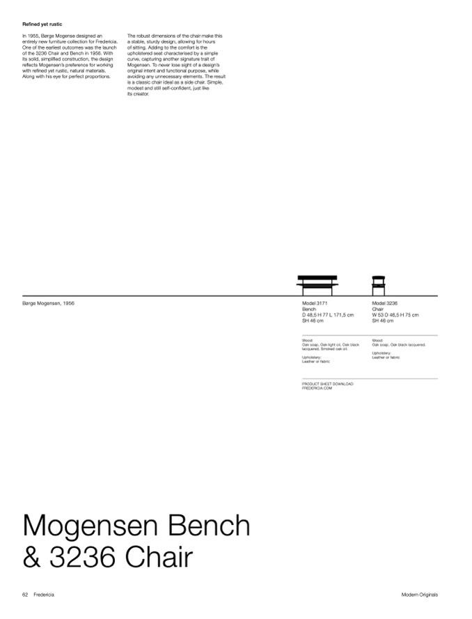 of the 3236 Chair and Bench in 1956. With