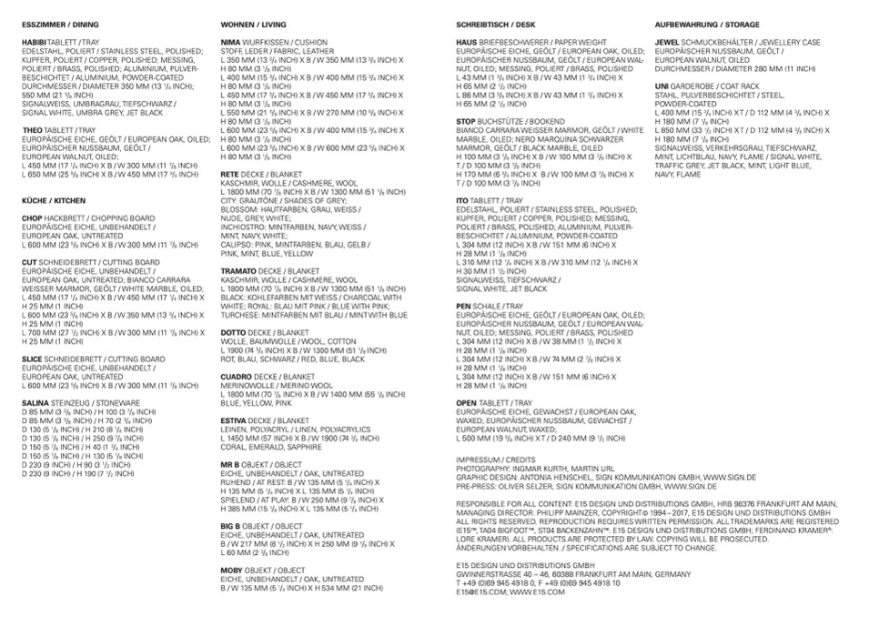 RESPONSIBLE FOR ALL CONTENT: E15 DESIGN UND DISTRIBUTIONS GMBH, HRB 98376 FRANKFURT AM MAIN,