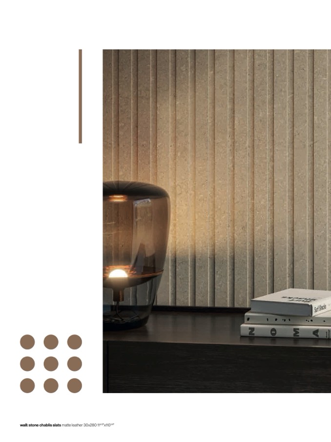 wall: stone chablis slats matte leather 30x280 114/5”x1101/4”