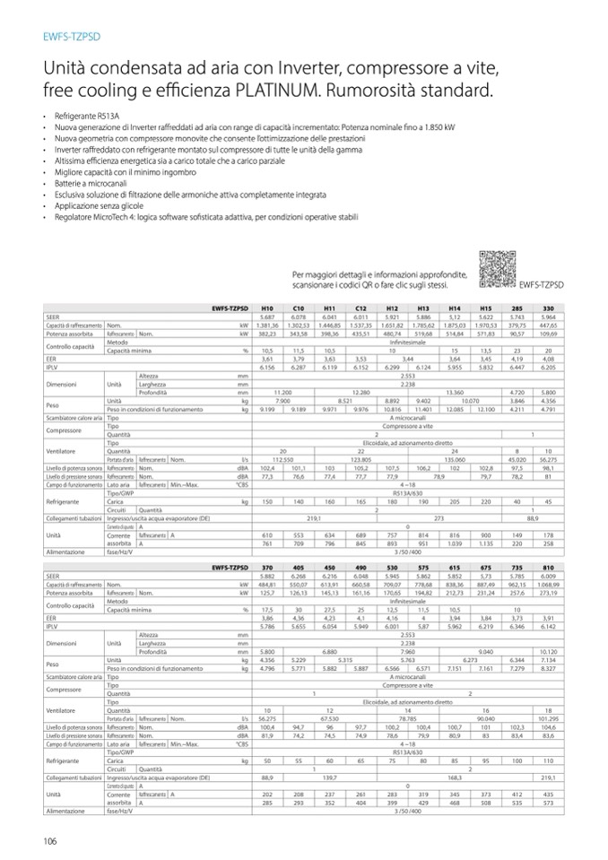 • Inverter raffreddato con refrigerante montato sul compressore di tutte le unit