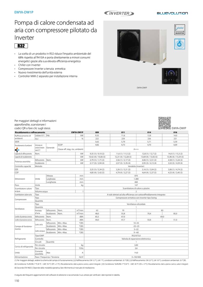 (4) Condizione: Ta BS/BU 7 °C/6 °C - LWC 35 °C (DT = 5 °C). Riscaldamento: dati a pieno carico; valori integrati. | (5) Condizione: Ta BS/BU 7 °C/6 °C - LWC 45 °C (Dt = 5 °C). Riscaldamento: dati a pieno carico; valori integrati