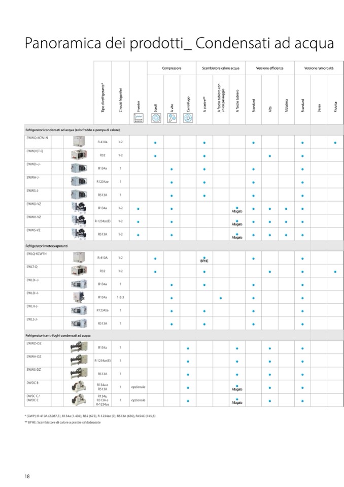 Refrigeratori condensati ad acqua (solo freddo e pompa di calore)