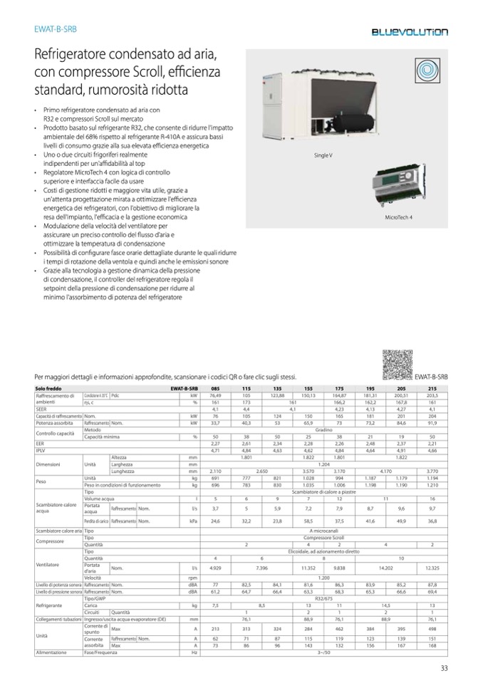• Prodotto basato sul refrigerante R32, che consente di ridurre l'impatto