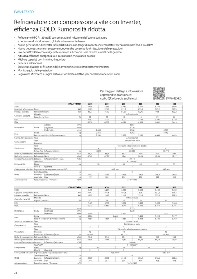 • Refrigerante HFO R-1234ze(E) con potenziale di riduzione dell'ozono pari a zero