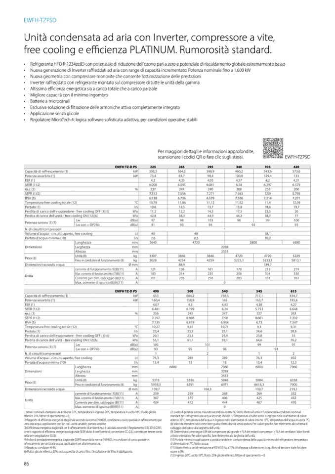 (12) Ingresso 26°C, uscita 18°C, fluido: 25% glicole etilenico, fattore di sporcamento = 0.