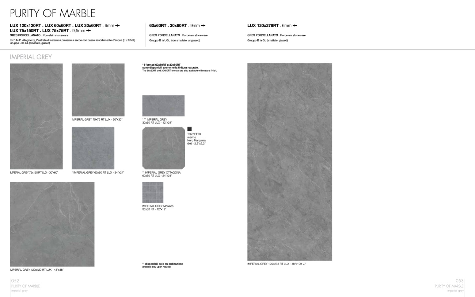 The 60x60RT and 30X60RT formats are also available with natural finish.