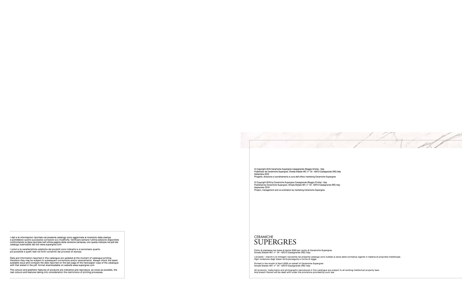 Printed in the month of April 2020 on behalf of Ceramiche Supergres
