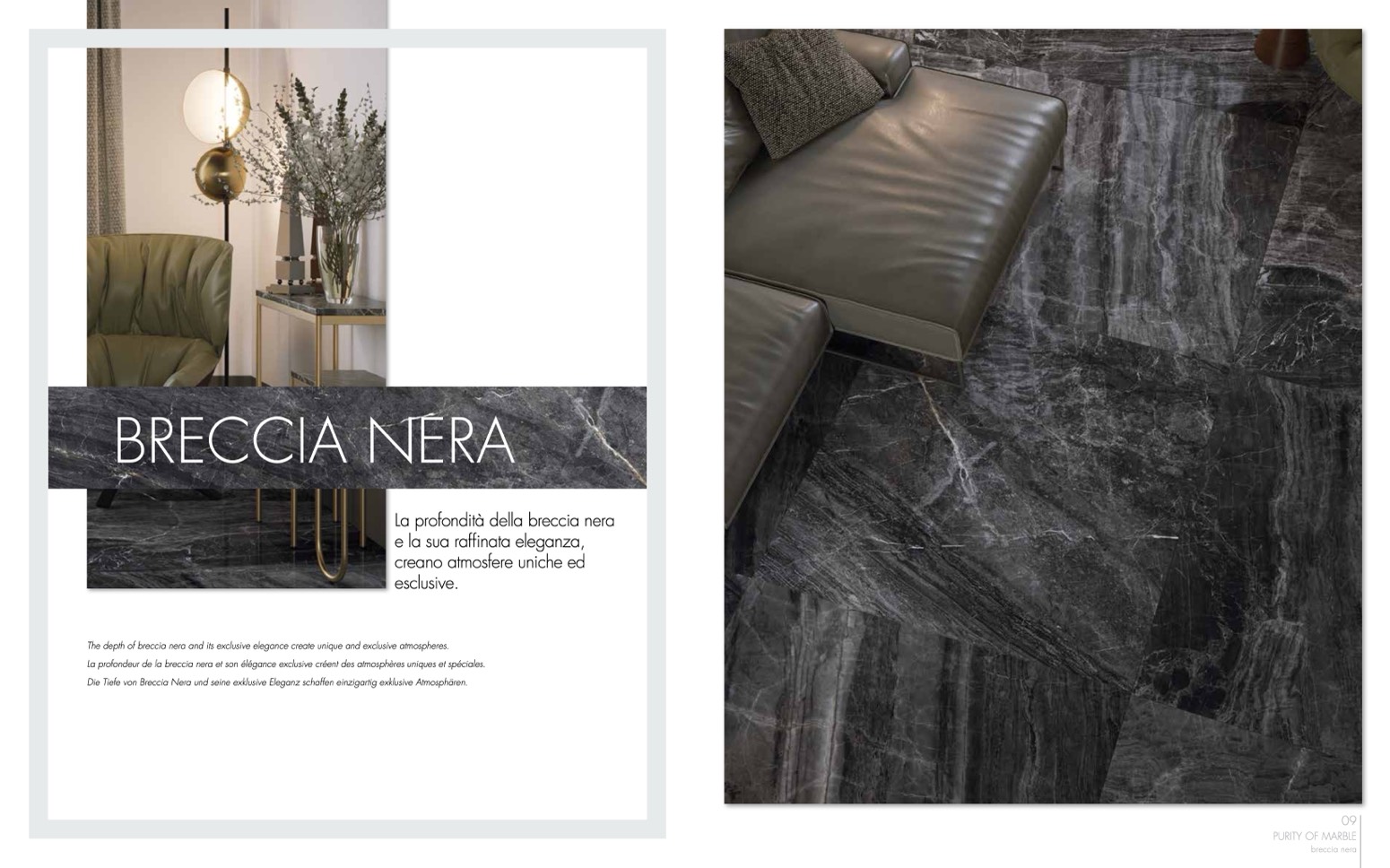 Die Tiefe von Breccia Nera und seine exklusive Eleganz schaffen einzigartig exklusive Atmosphären.
