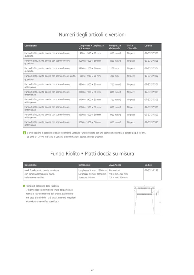 Fundo Riolito, piatto doccia con scarico lineare corta,