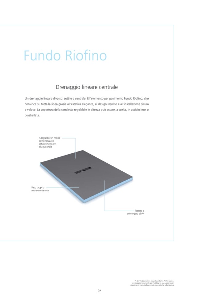 Un drenaggio lineare diverso: sottile e centrale. È l'elemento per pavimento Fundo Riofino, che