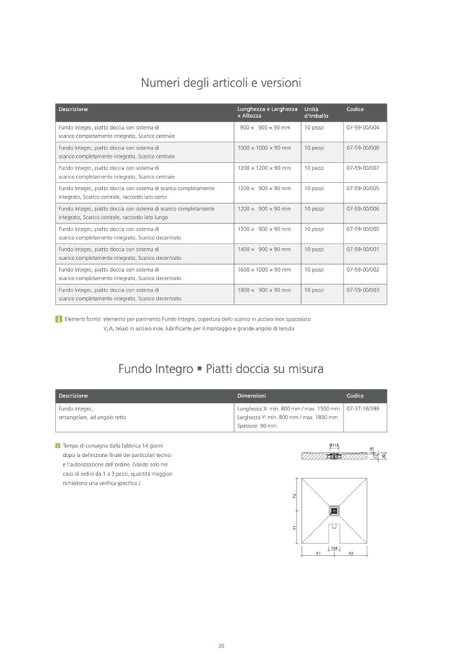 Elementi forniti: elemento per pavimento Fundo Integro, copertura dello scarico in acciaio inox spazzolato