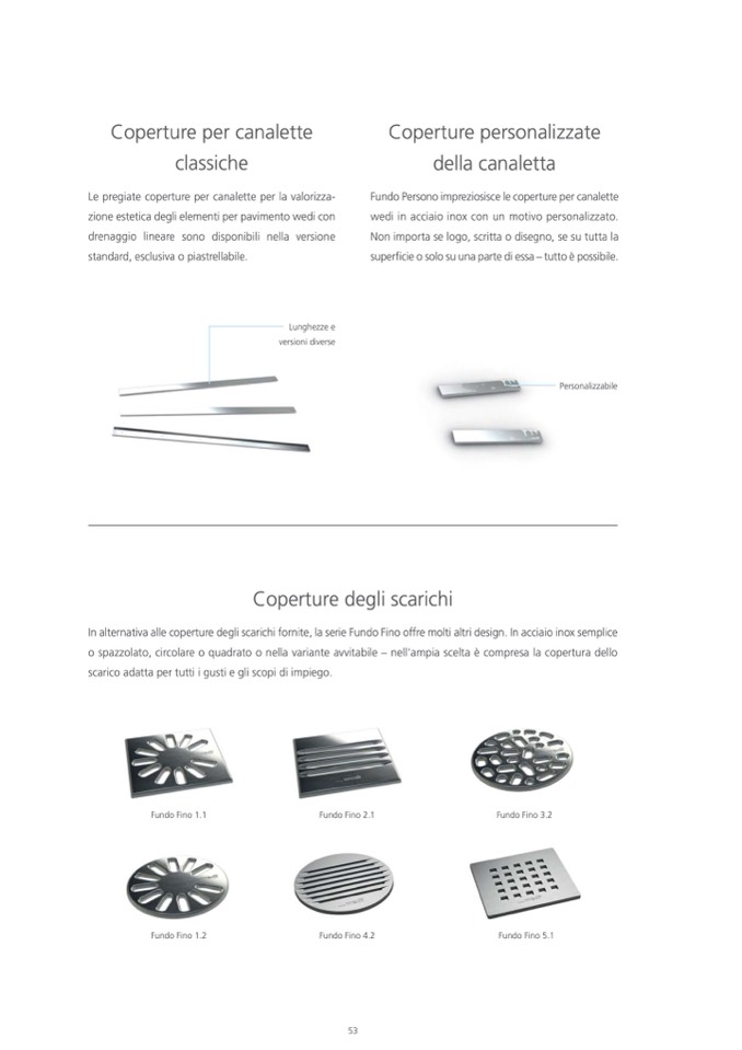 In alternativa alle coperture degli scarichi fornite, la serie Fundo Fino offre molti altri design. In acciaio inox semplice