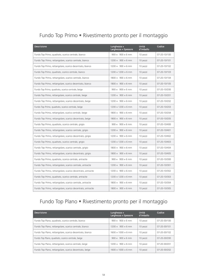 Fundo Top Primo, quadrato, scarico centrale, grigio