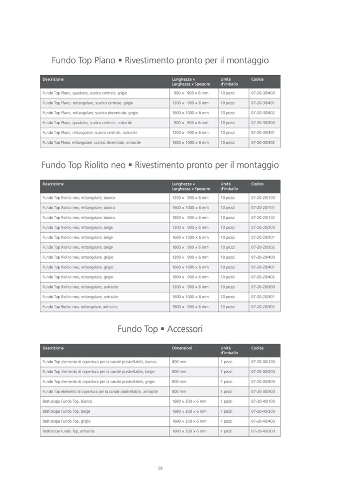 Fundo Top Plano, rettangolare, scarico centrale, grigio