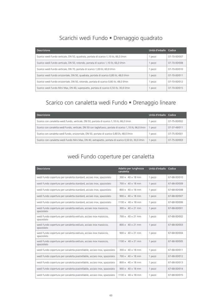 Scarico con canaletta wedi Fundo, verticale, DN 50, portata di scarico 1,10 l/s; 66,0 l/min