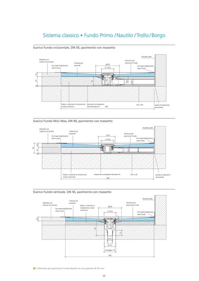 Scarico Fundo Mini Max, DN 40, pavimento con massetto