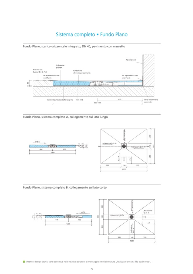 Ulteriori disegni tecnici sono contenuti nelle relative istruzioni di montaggio e nella brochure „Realizzare docce a filo pavimento“.