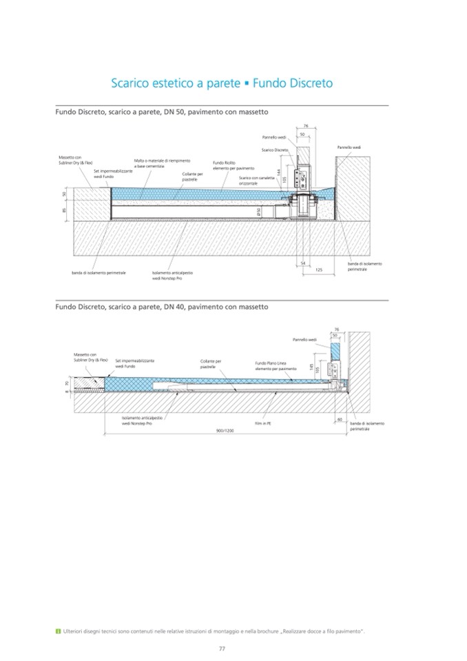 Ulteriori disegni tecnici sono contenuti nelle relative istruzioni di montaggio e nella brochure „Realizzare docce a filo pavimento“.