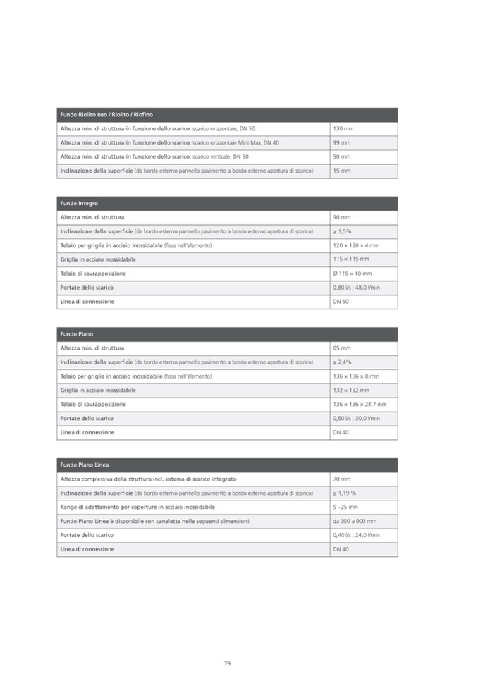 Fundo Plano Linea è disponibile con canalette nelle seguenti dimensioni