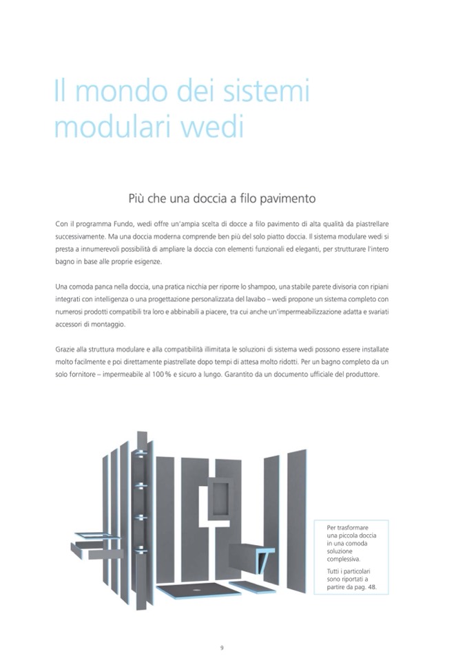 successivamente. Ma una doccia moderna comprende ben più del solo piatto doccia. Il sistema modulare wedi si