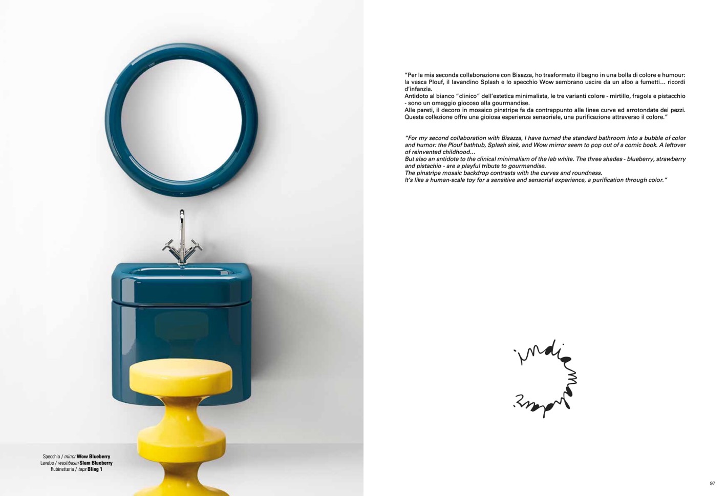 and humor: the Plouf bathtub, Splash sink, and Wow mirror seem to pop out of a comic book. A leftover