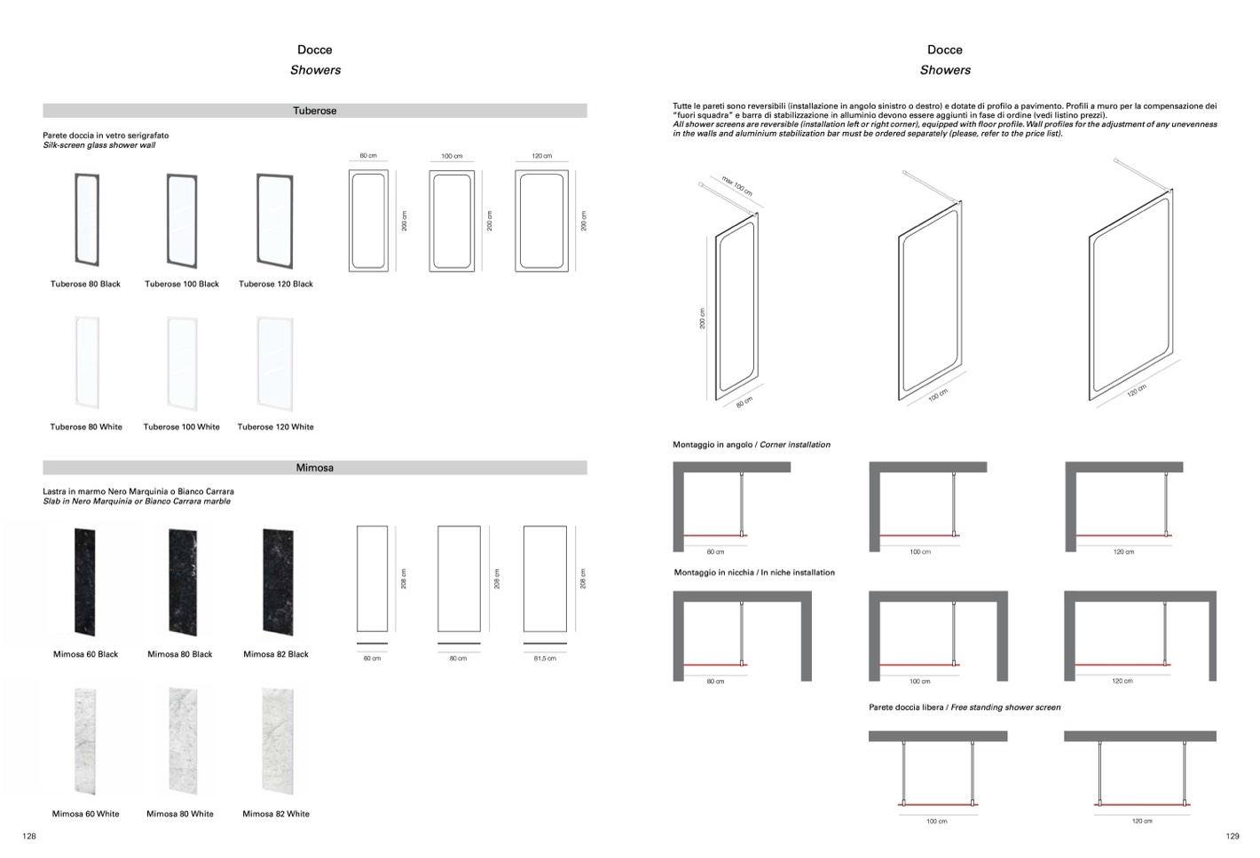 Parete doccia libera / Free standing shower screen