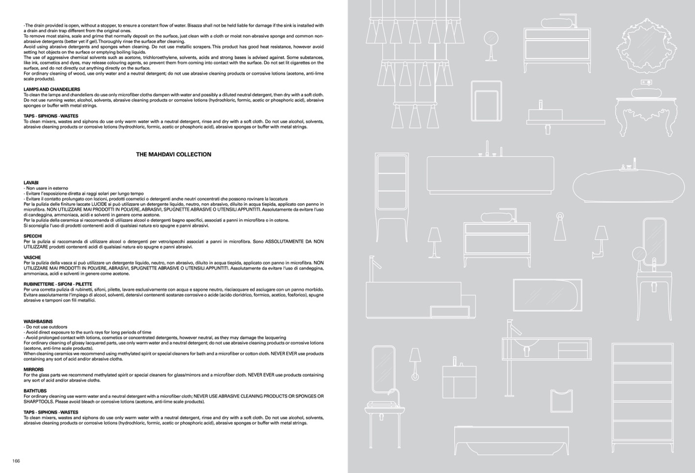 Per una corretta pulizia di rubinetti, sifoni, pilette, lavare esclusivamente con acqua e sapone neutro, risciacquare ed asciugare con un panno morbido.